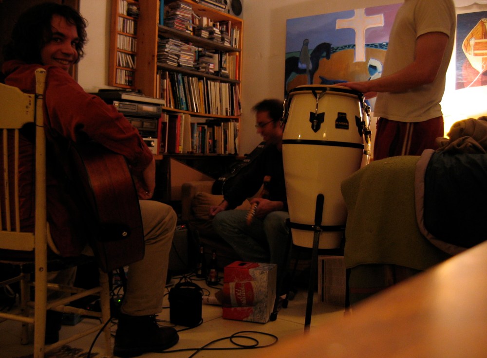 We can feel anticipation radiating off the instruments. They want it just as bad as we do. Embracing these objects we begin to play. I can make out forms moving through the smoke hanging in the shack: we have converted into waves. Three sound waves that embody the character of our chosen instruments bound with our intention. The waves are traveling side-by-side across an endless planar surface—time itself. They glide seamlessly, frequencies and amplitudes playing off each other. Darting baiting querying, on they go. As waves we can bump into each other, exert subtle influence or blatantly push off on different paths. It seems we could go on forever like this, creating endless variations on themes. If not for the mere basic requirements of life like water and food perhaps we would.