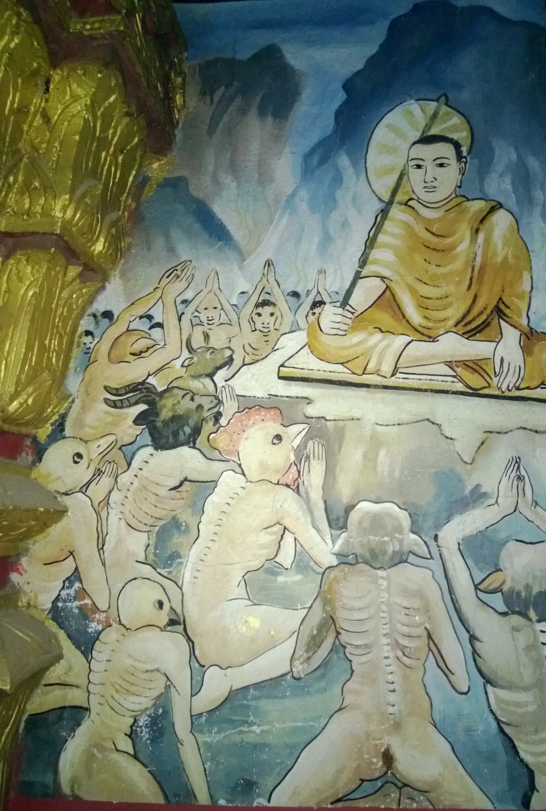 I’m fascinated by the murals found in Buddhist temples. These are from Wat Phon Xay in Luang Prabang, Laos. Epic stories that I would like to read or learn more about.. The murals in this temple appear to be about Phra Malaya, a monk who through meditation visited the numerous heavens and hells in Buddhist cosmology. The Lao version of the Ramayana epic may also be depicted here.